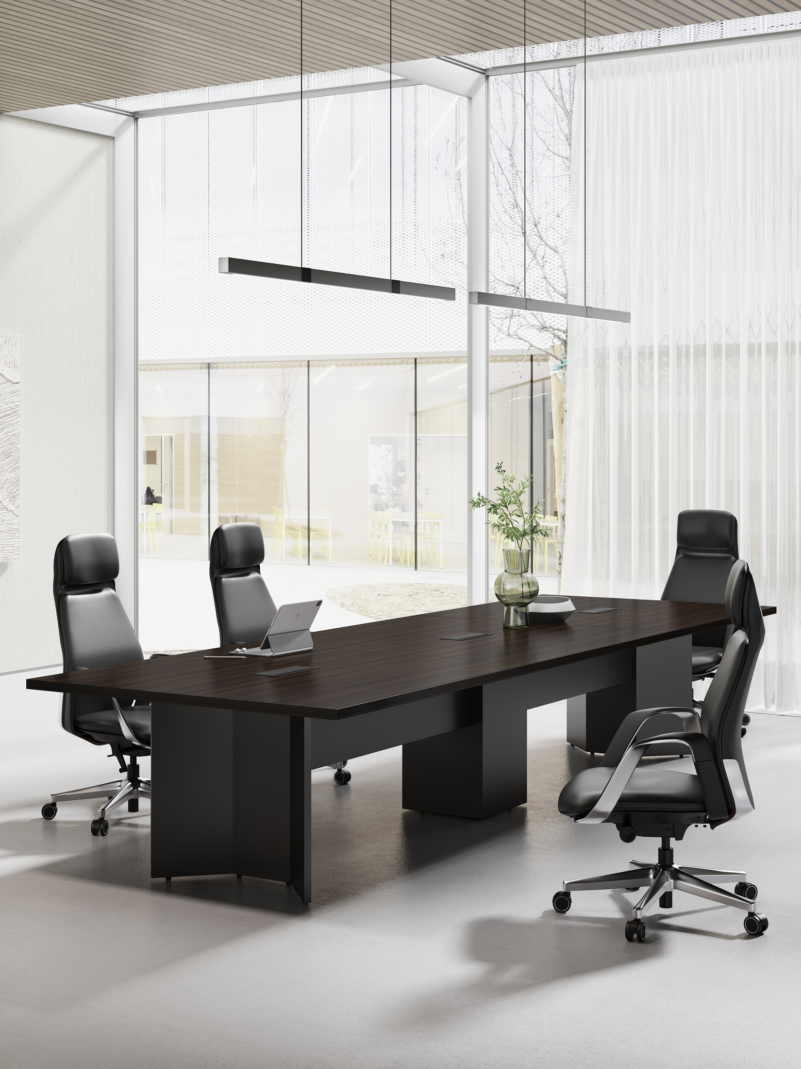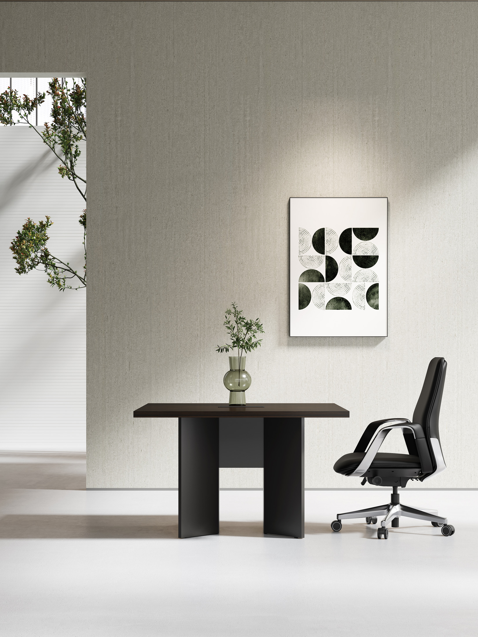 1、台面35mm;配铝线盖(3强电1电话1网络)2、台面木皮油漆,其余三胺板。