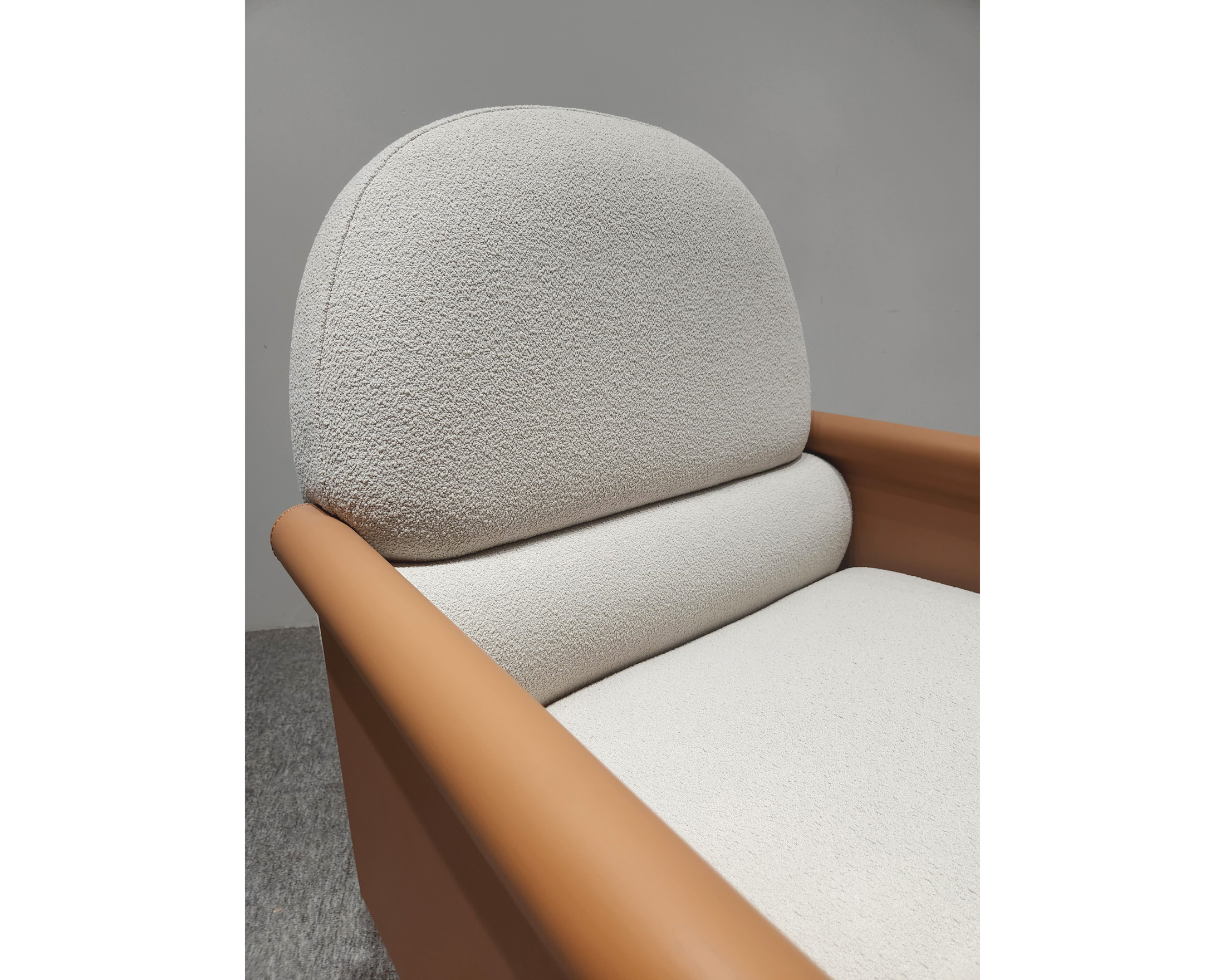 4、扶手钢板马鞍皮包裹。
