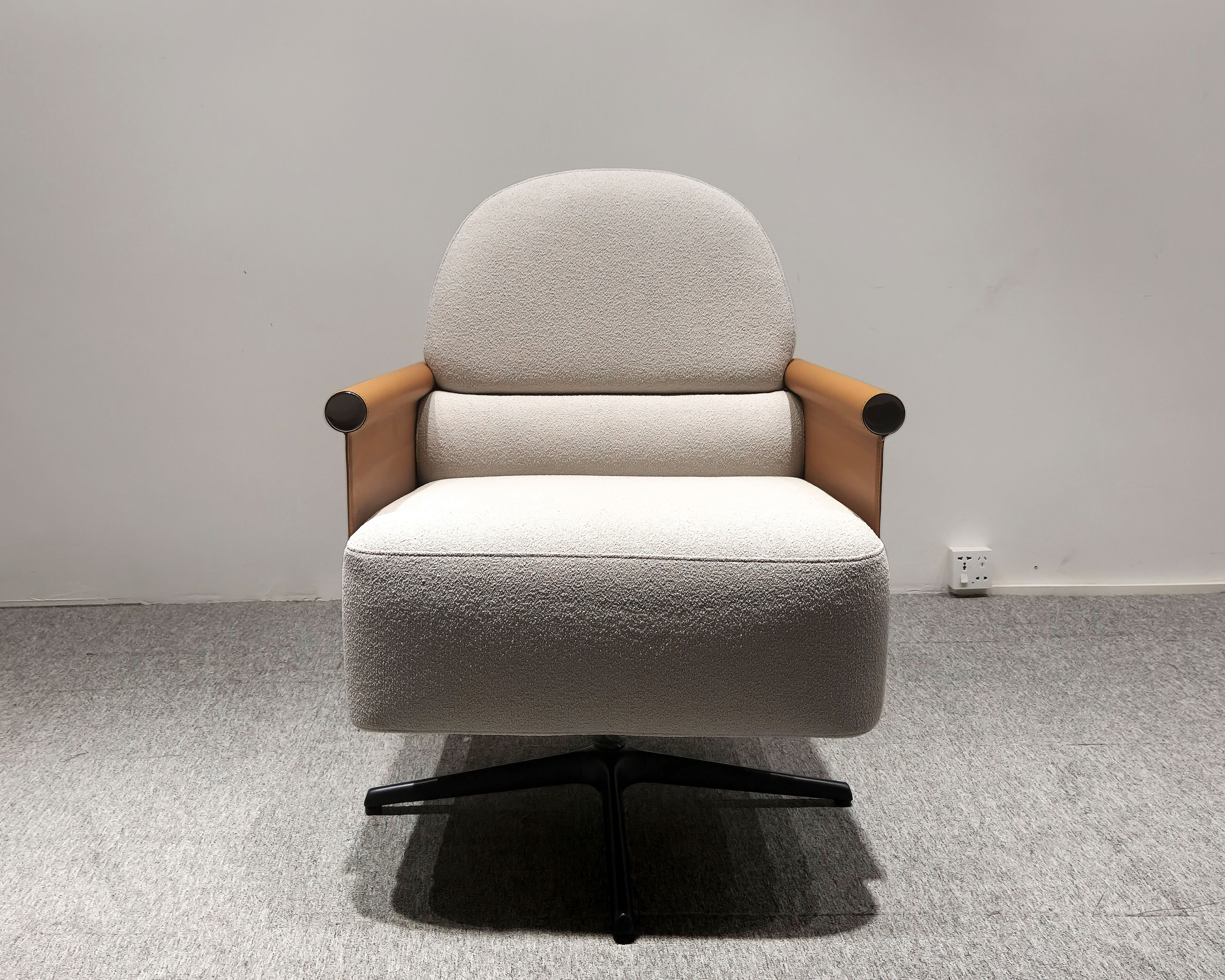 3、黑色烤漆旋转钢脚;