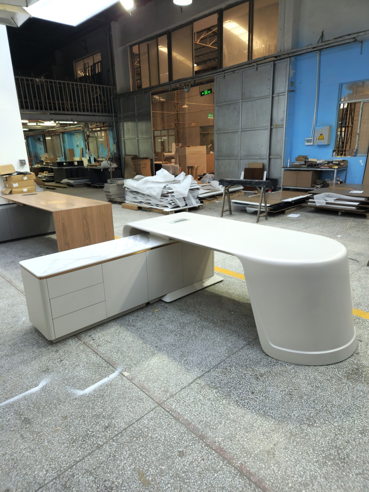 白色大圆弧班台