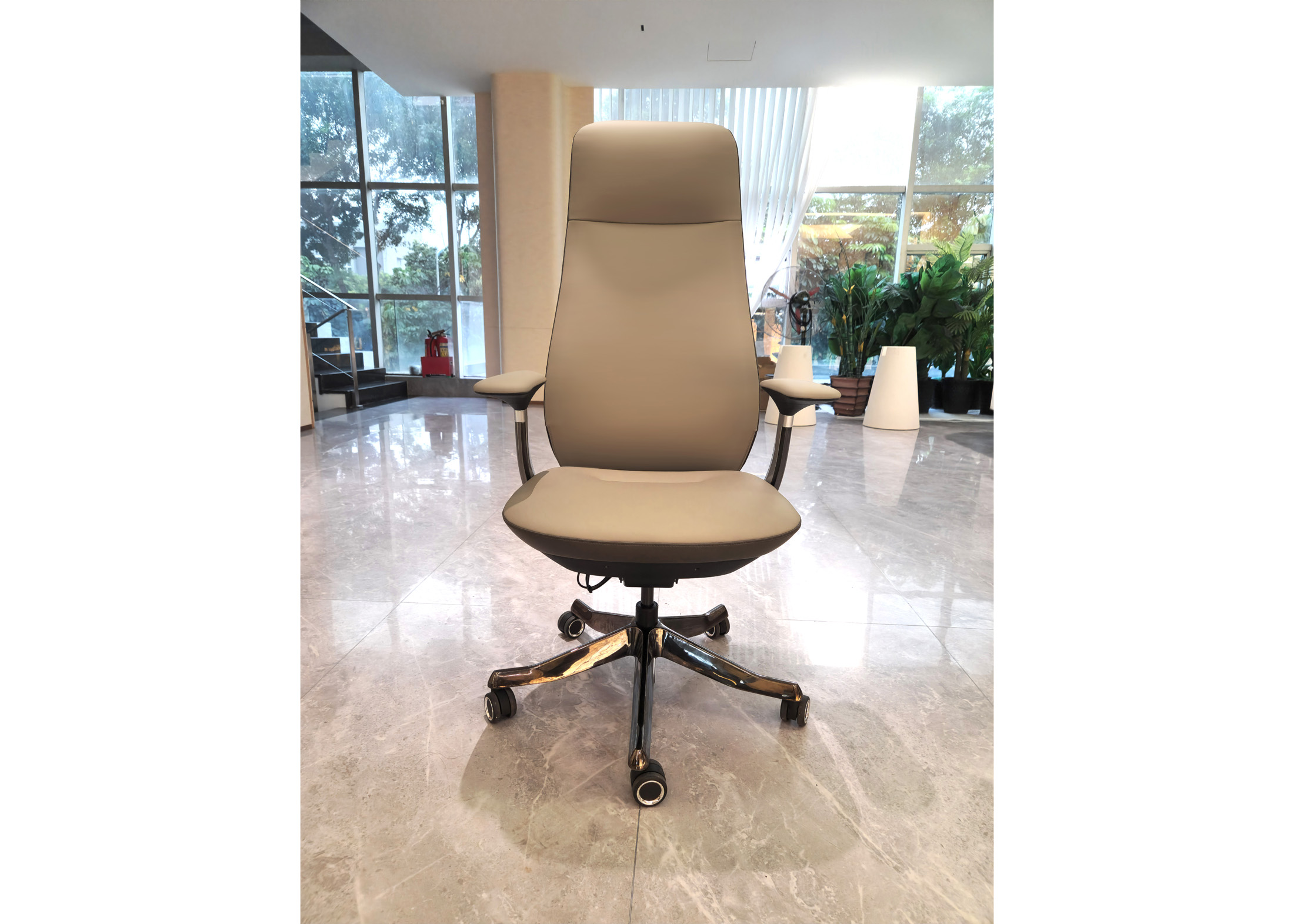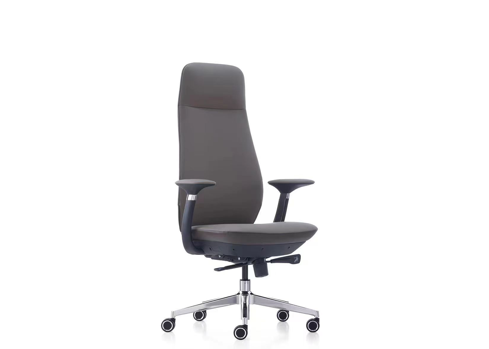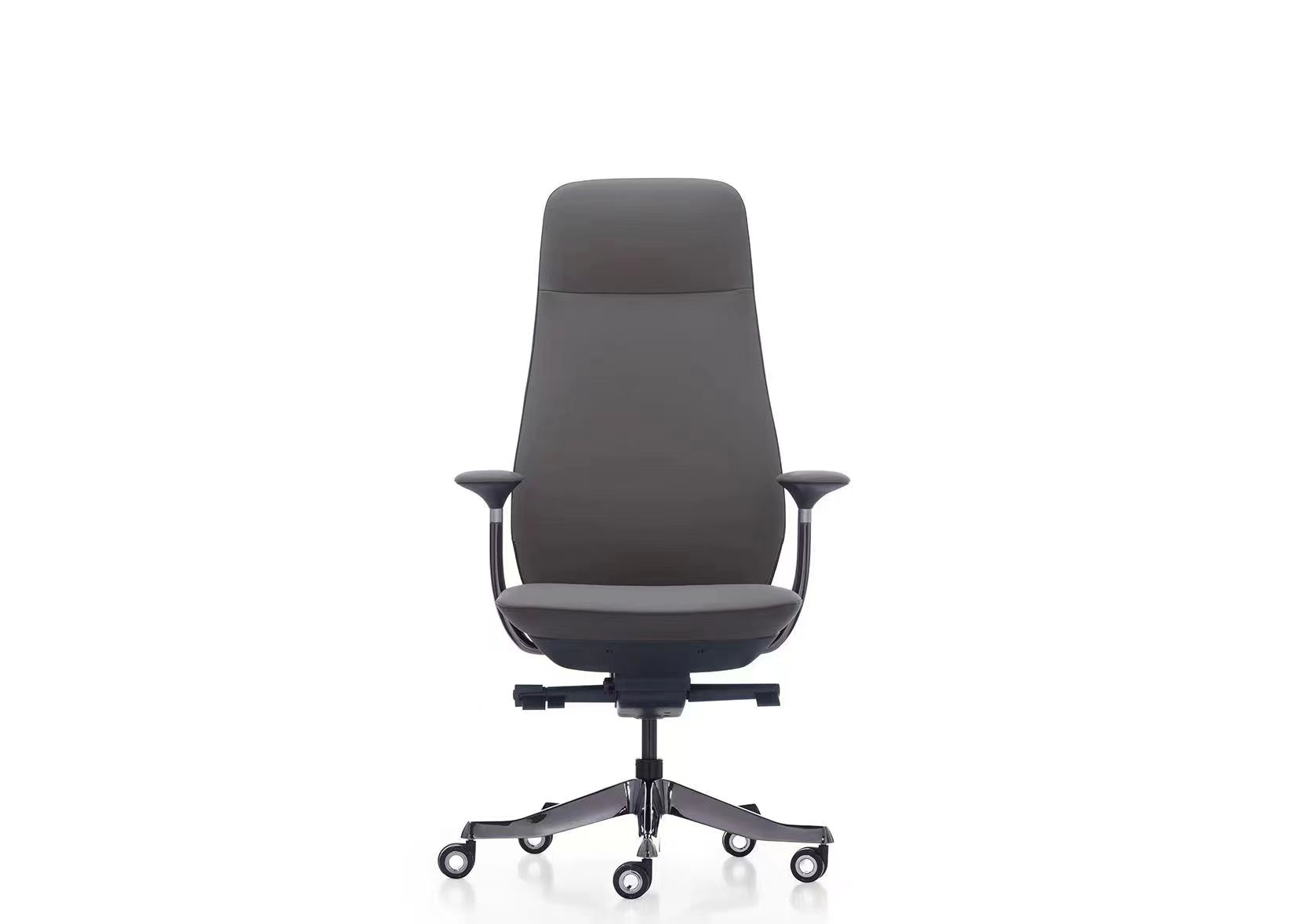 5. Sanhong 4-stage black gas lift. Backrest support in electroplated gunmetal aluminum alloy.