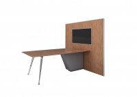 1、墙面、桌面为木皮颜色,台面开木质翻盖配一个多功能插座;