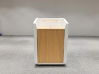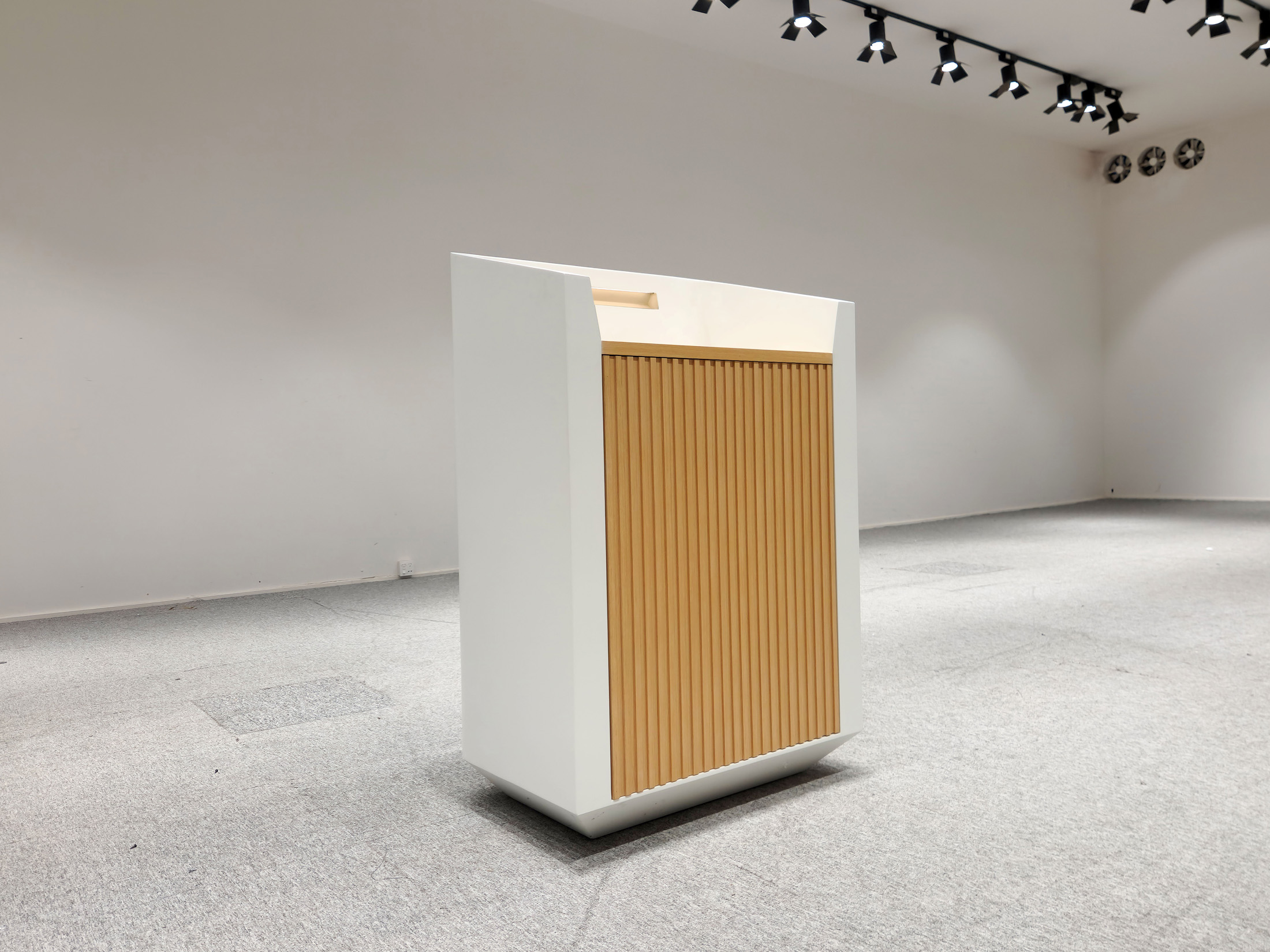 围板实色油漆,格栅门和面板木皮油漆。
