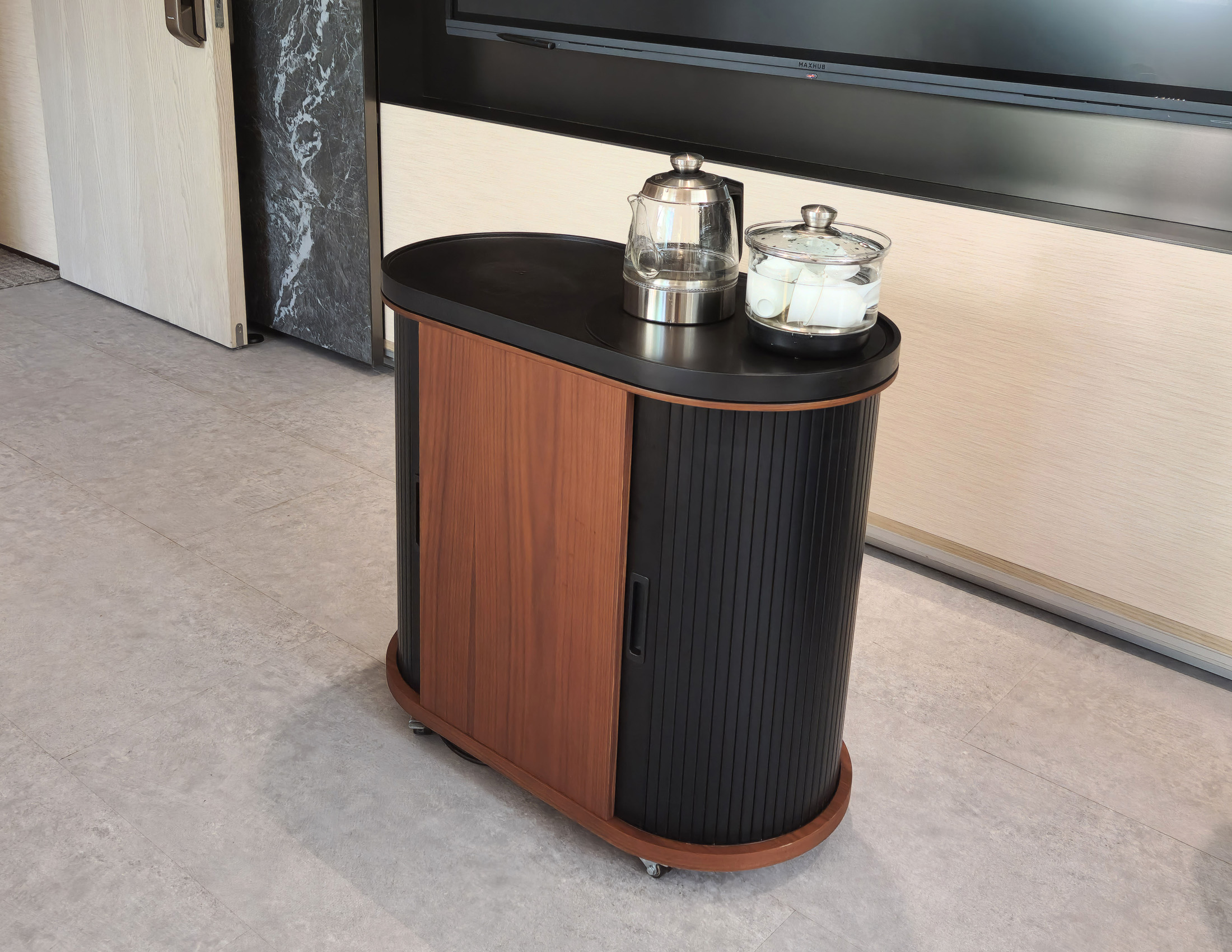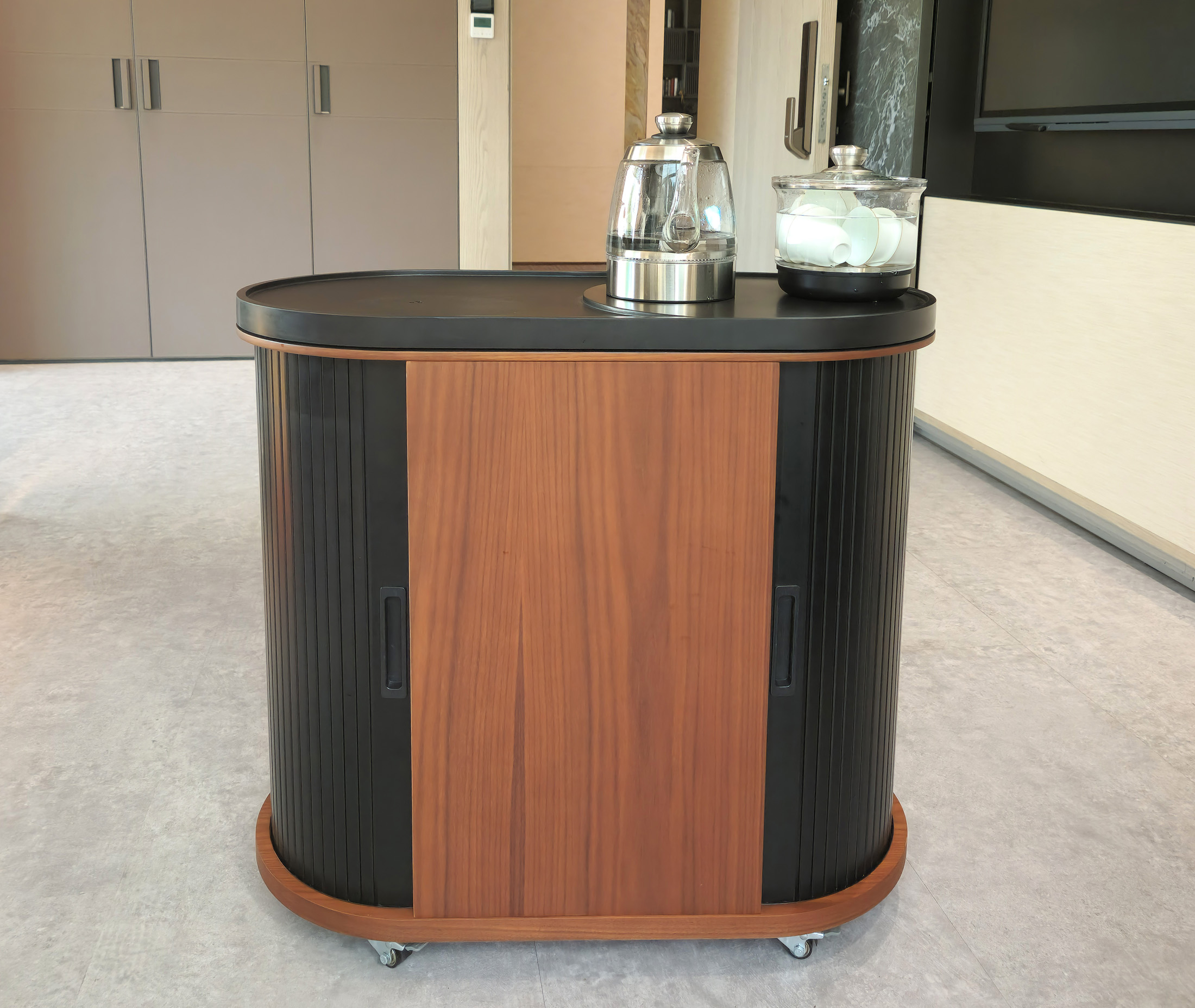桌面配砚石茶盘,含烧水壶(虹吸式上水),PVC卷帘门。