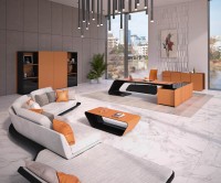 面板中间为木皮拼花 / 扪皮,其余为实色漆。