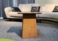 "Tabletop with solid oak, foot box with oak veneer, Italian semi-transparent zero-degree paint."