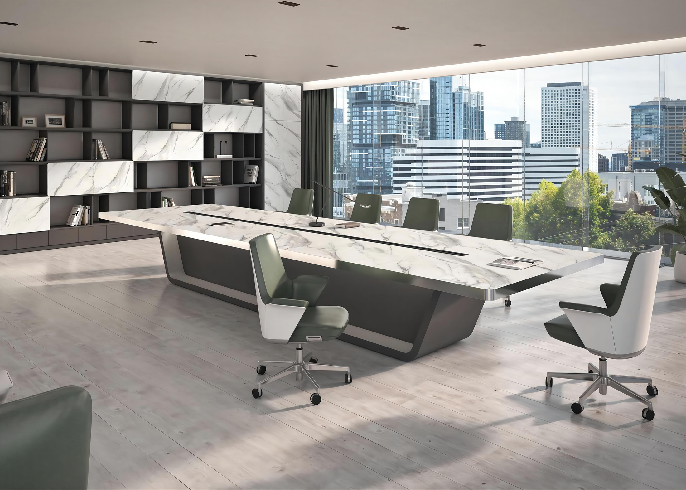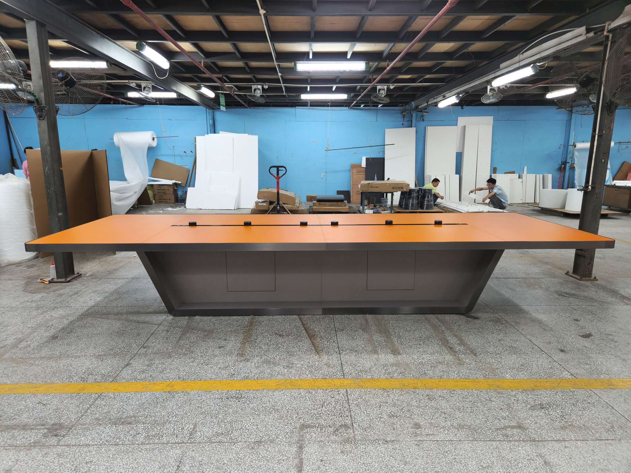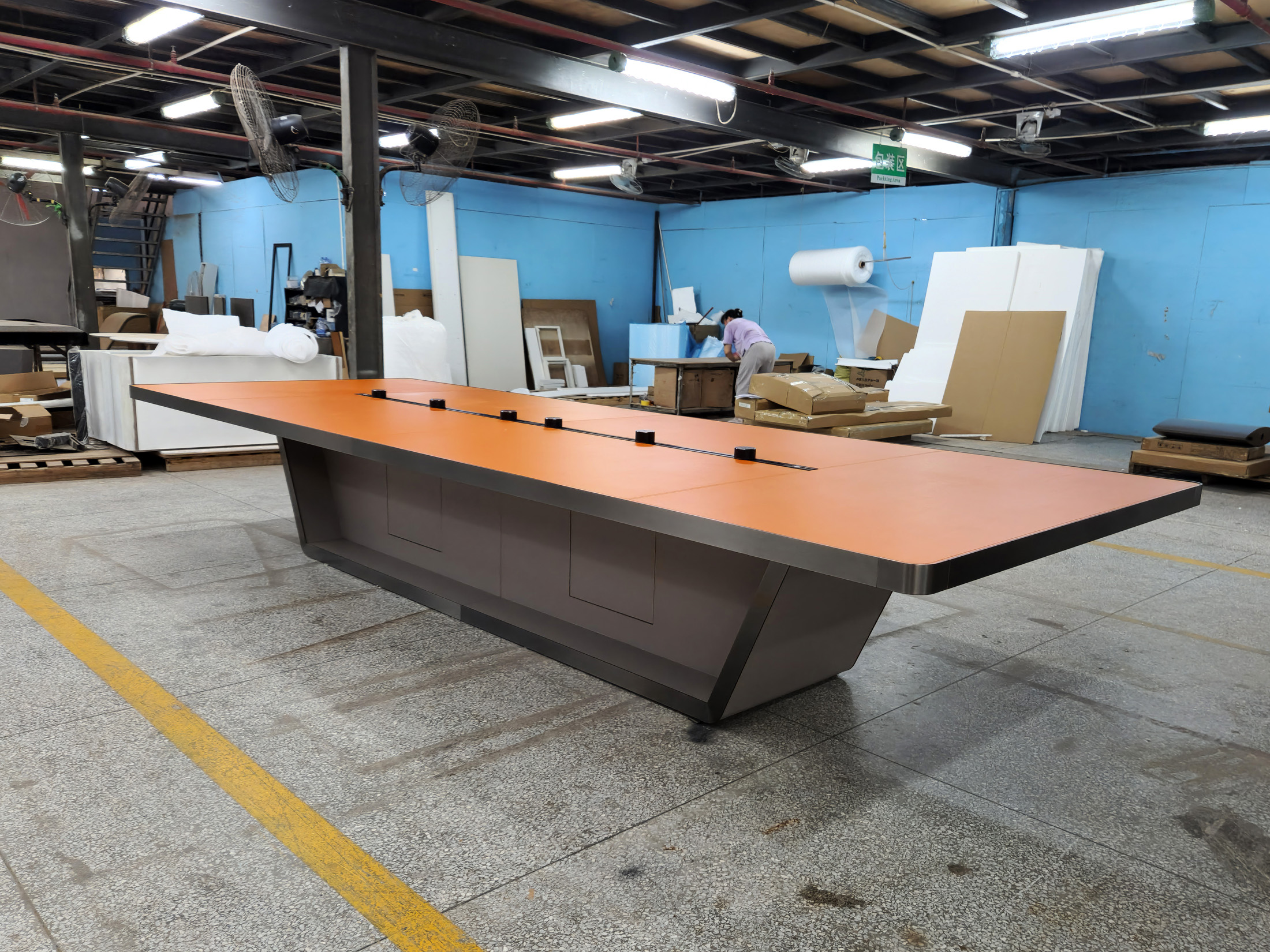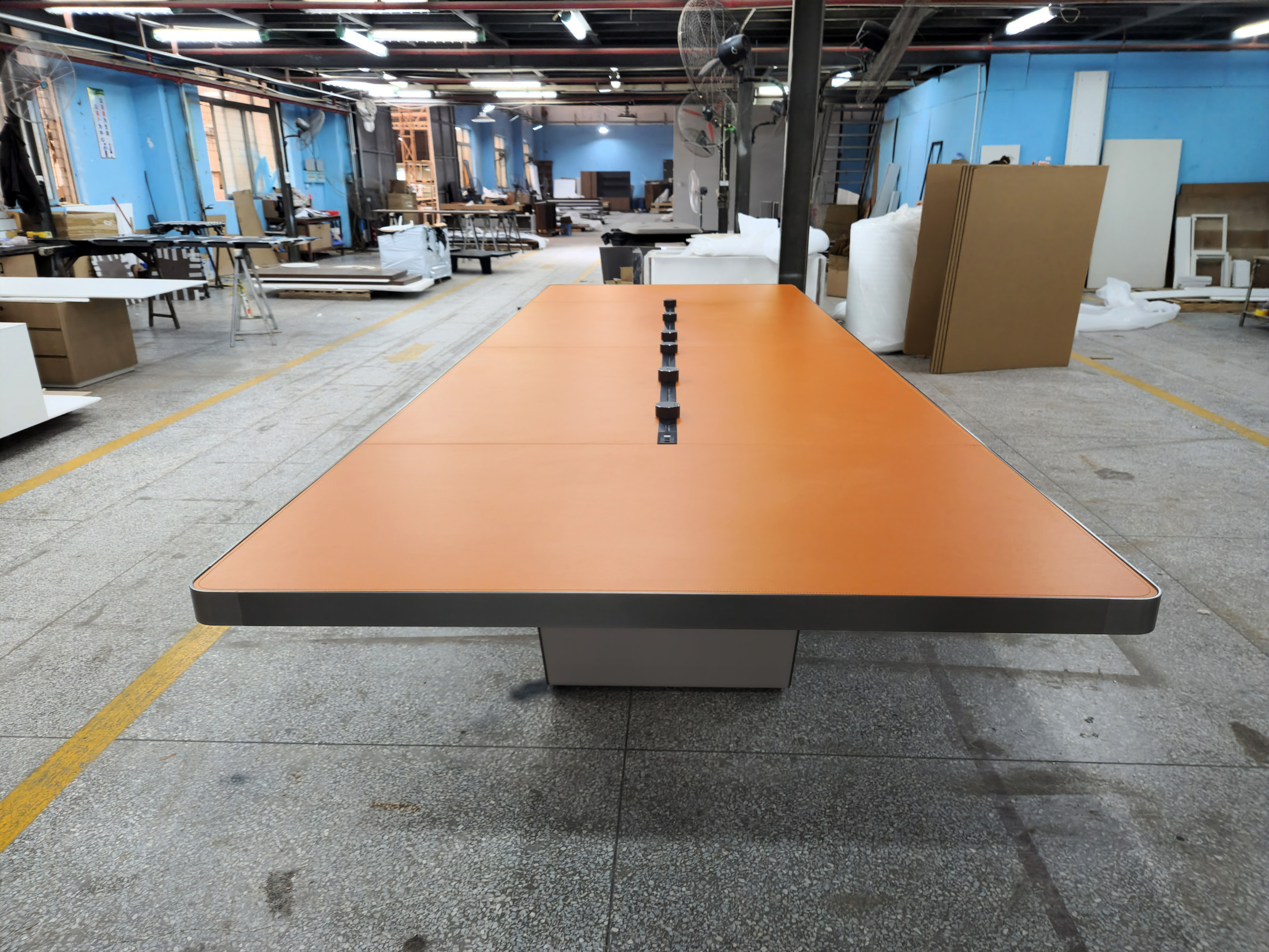 1、台面60mm厚木皮油漆,拉丝玫瑰金包边(选配),配置2条电力路轨含弱电(1USB,1电话,1网络,1高清)配4个强电插座,2、台脚木皮油漆拉丝玫瑰金包边(选配),台底LED灯带,U型台脚。