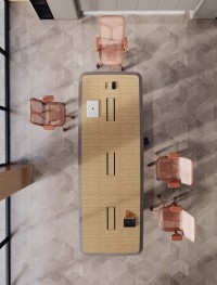 1、 台面60mm斜边,配木制同色翻盖板,线盒开86插座面板孔,椭圆型台脚。2、台面贴木皮; 3、台面斜边和台脚同色;4、黑色金属台架。