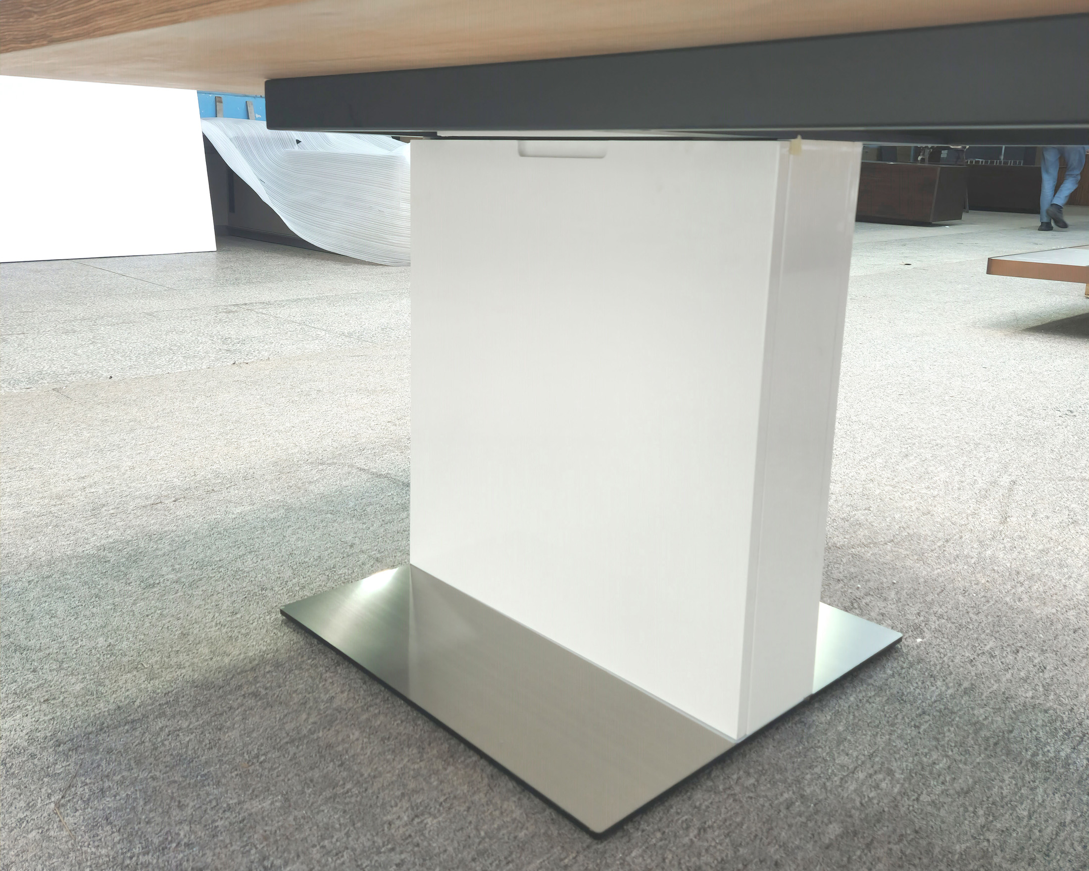 2、脚箱为亮光漆,台底铁架,脚板为拉丝不锈钢,台脚上线。 - 尺寸:
