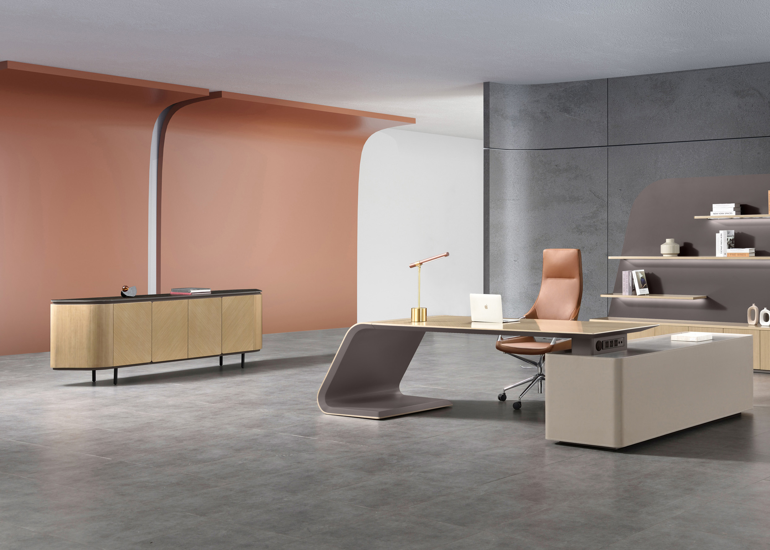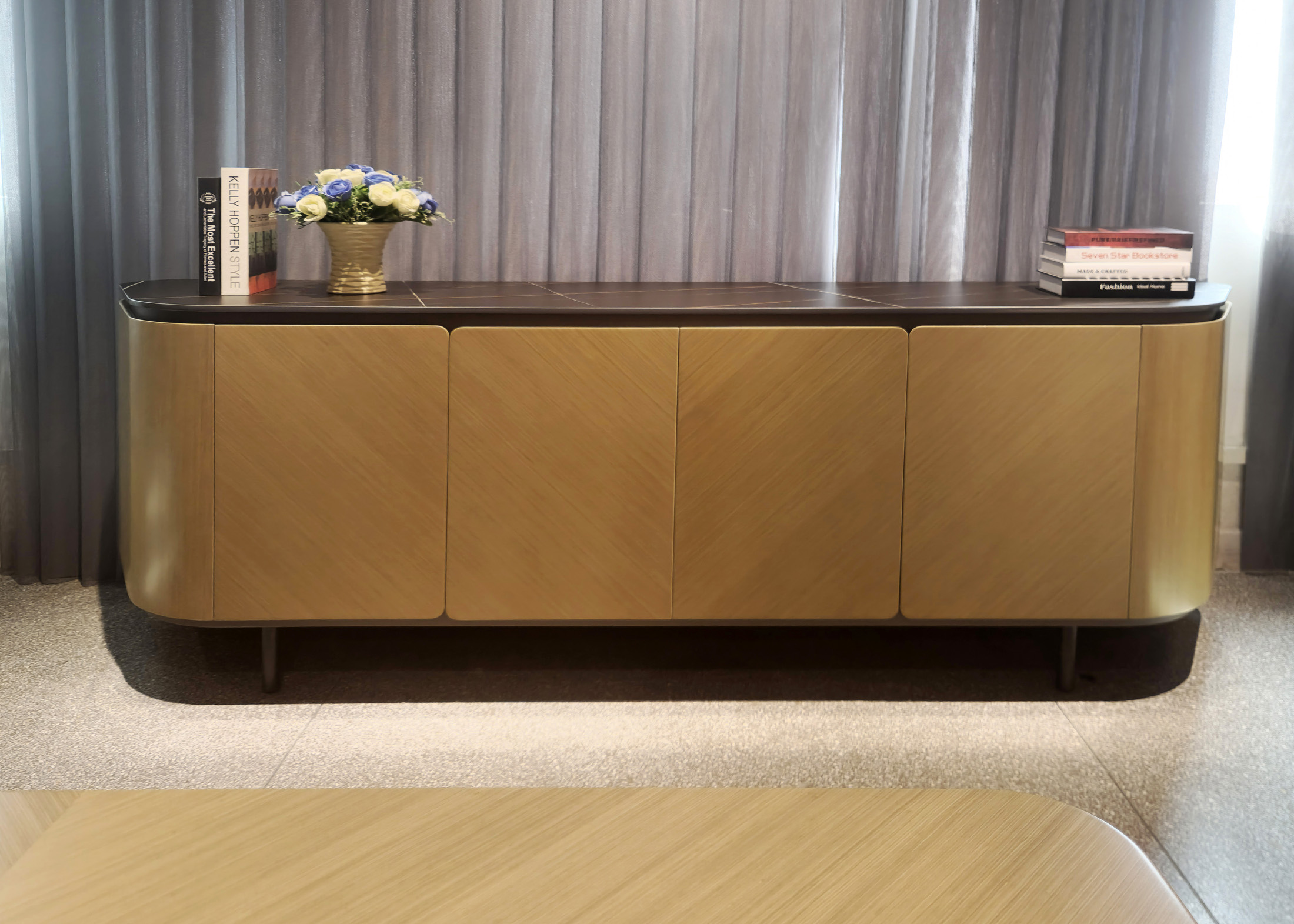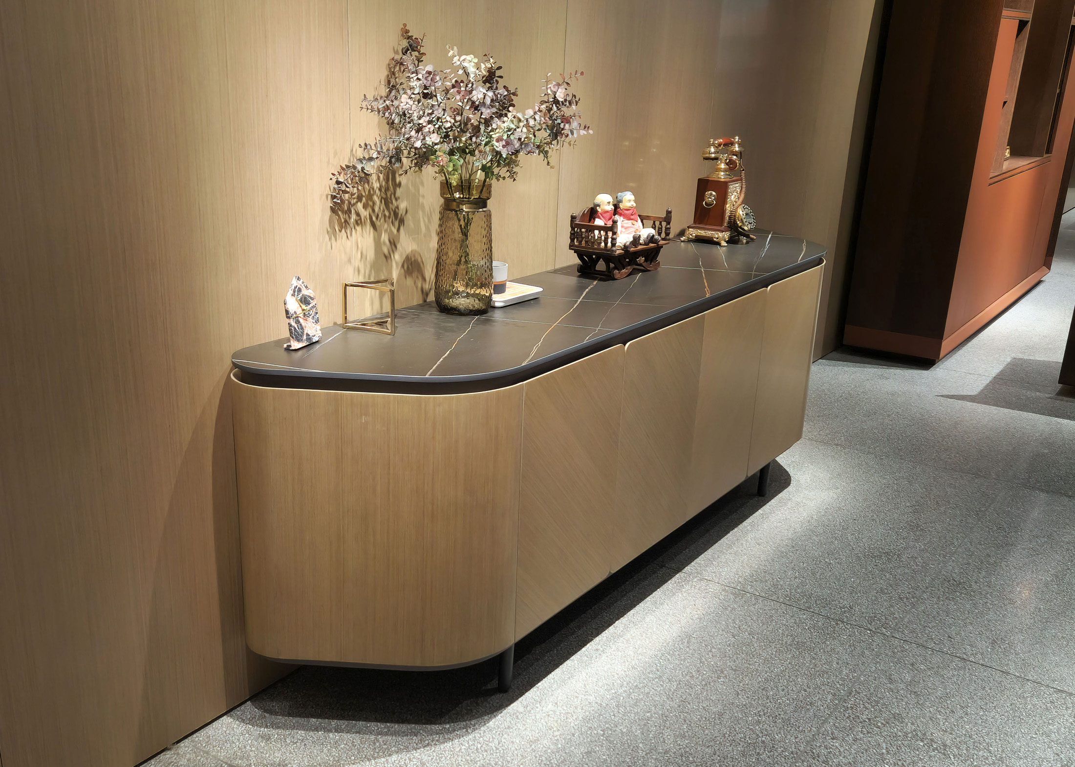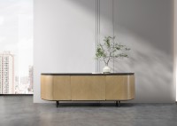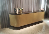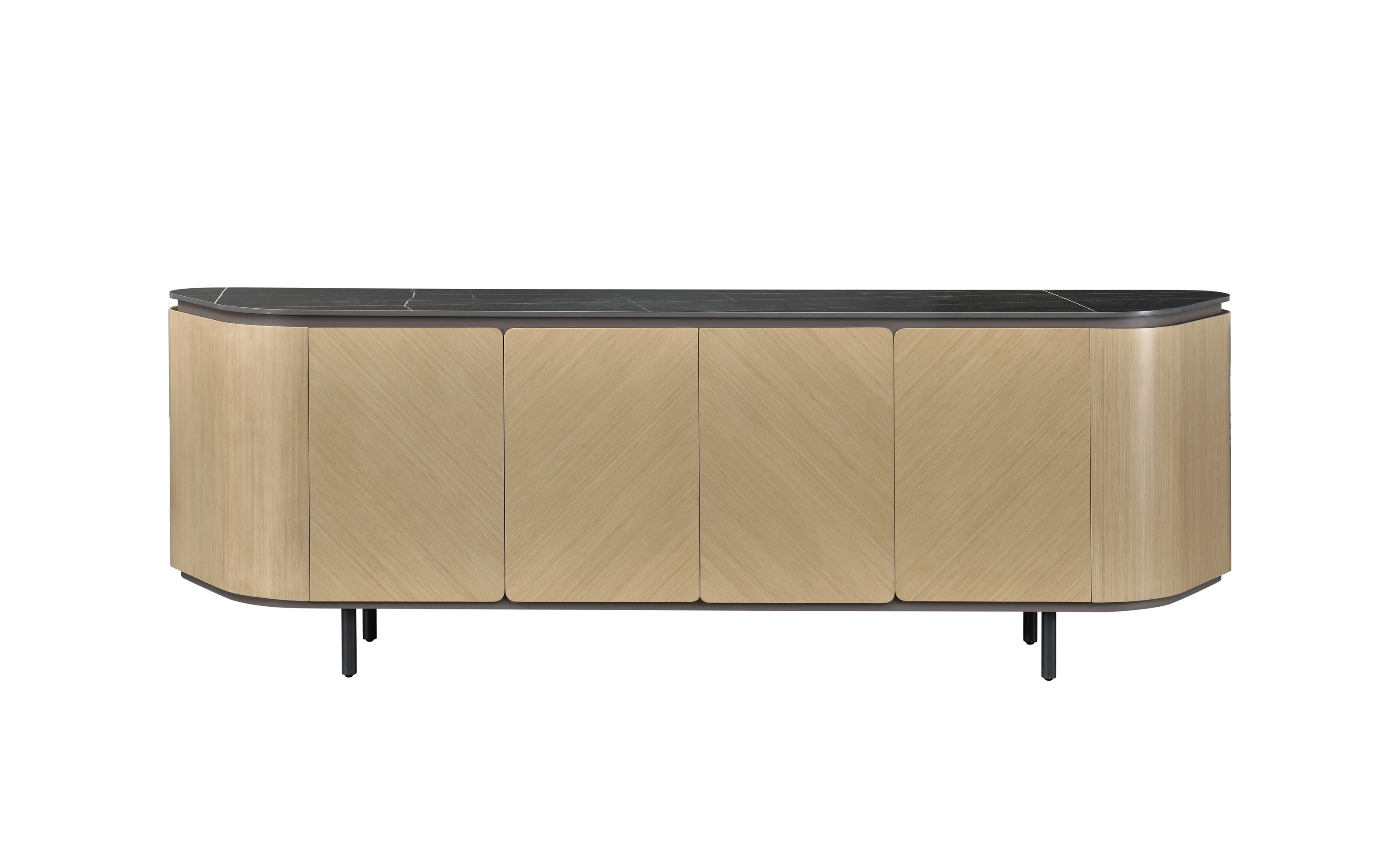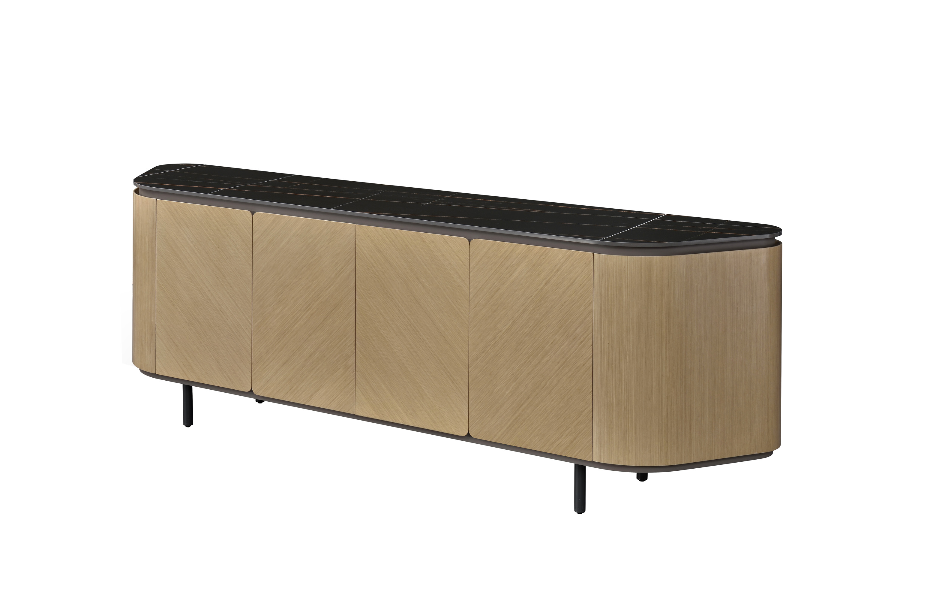 1、门板、侧板木皮油漆,其余为伦敦灰哑光漆;2、伦敦灰钢架,海福乐门铰,台面12MM岩板,钢制脚架。