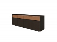1、抽面和外侧扪皮,柜内三胺板、顶、底、背木皮油漆,金属脚;