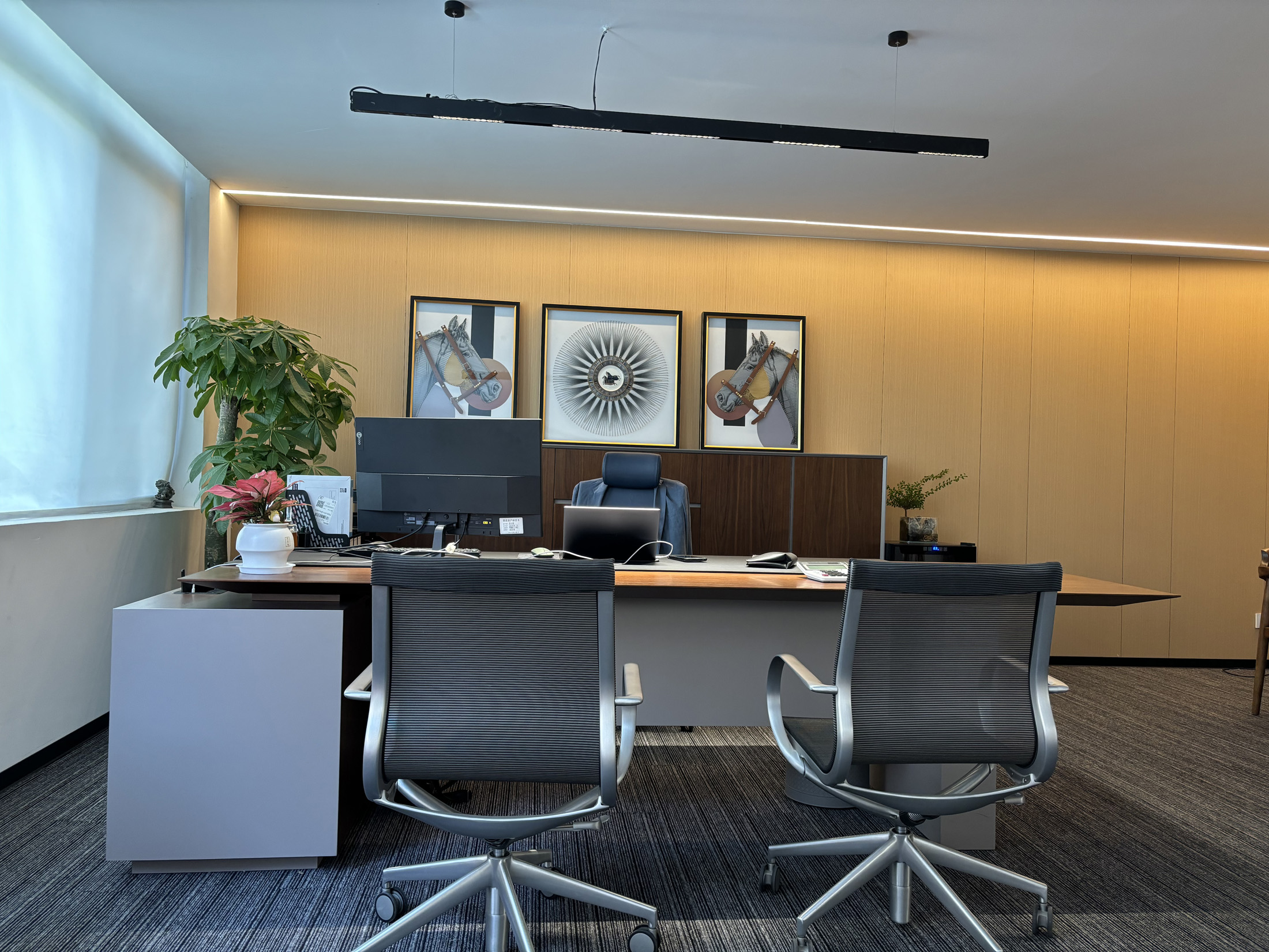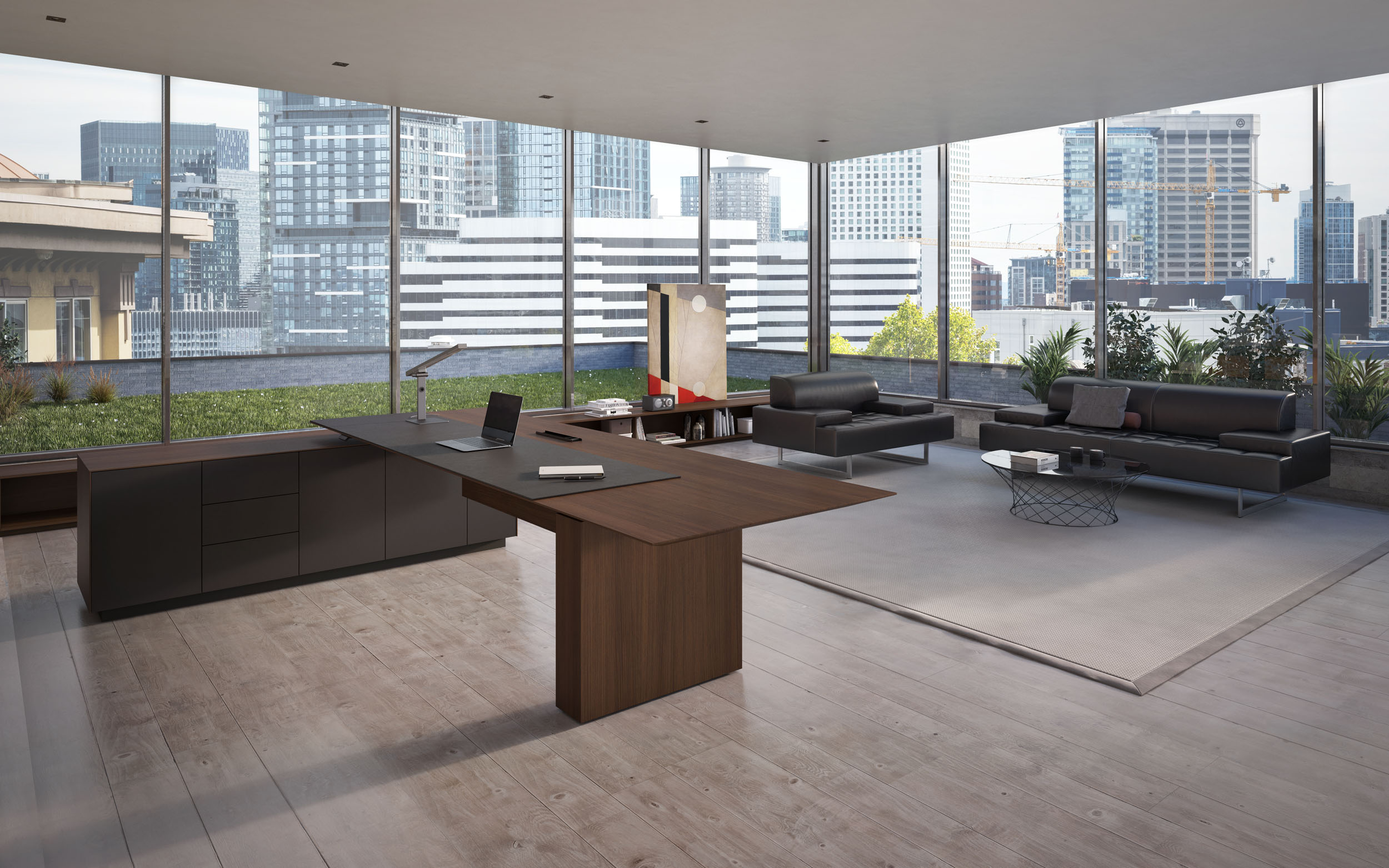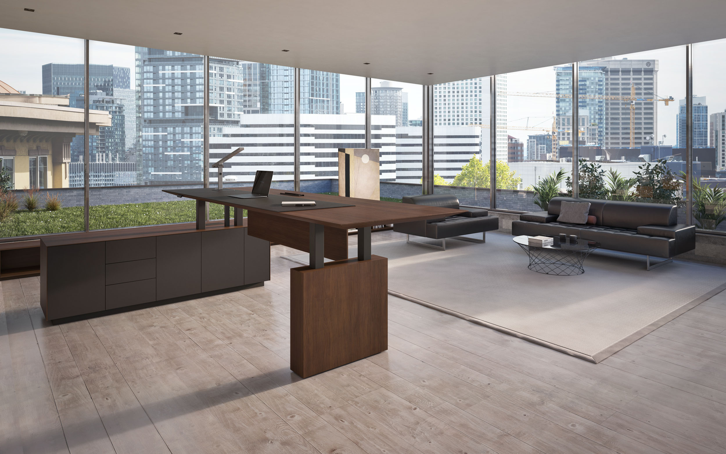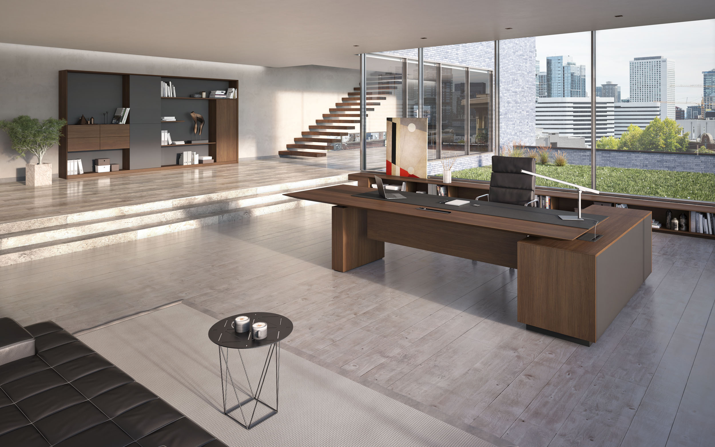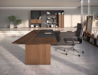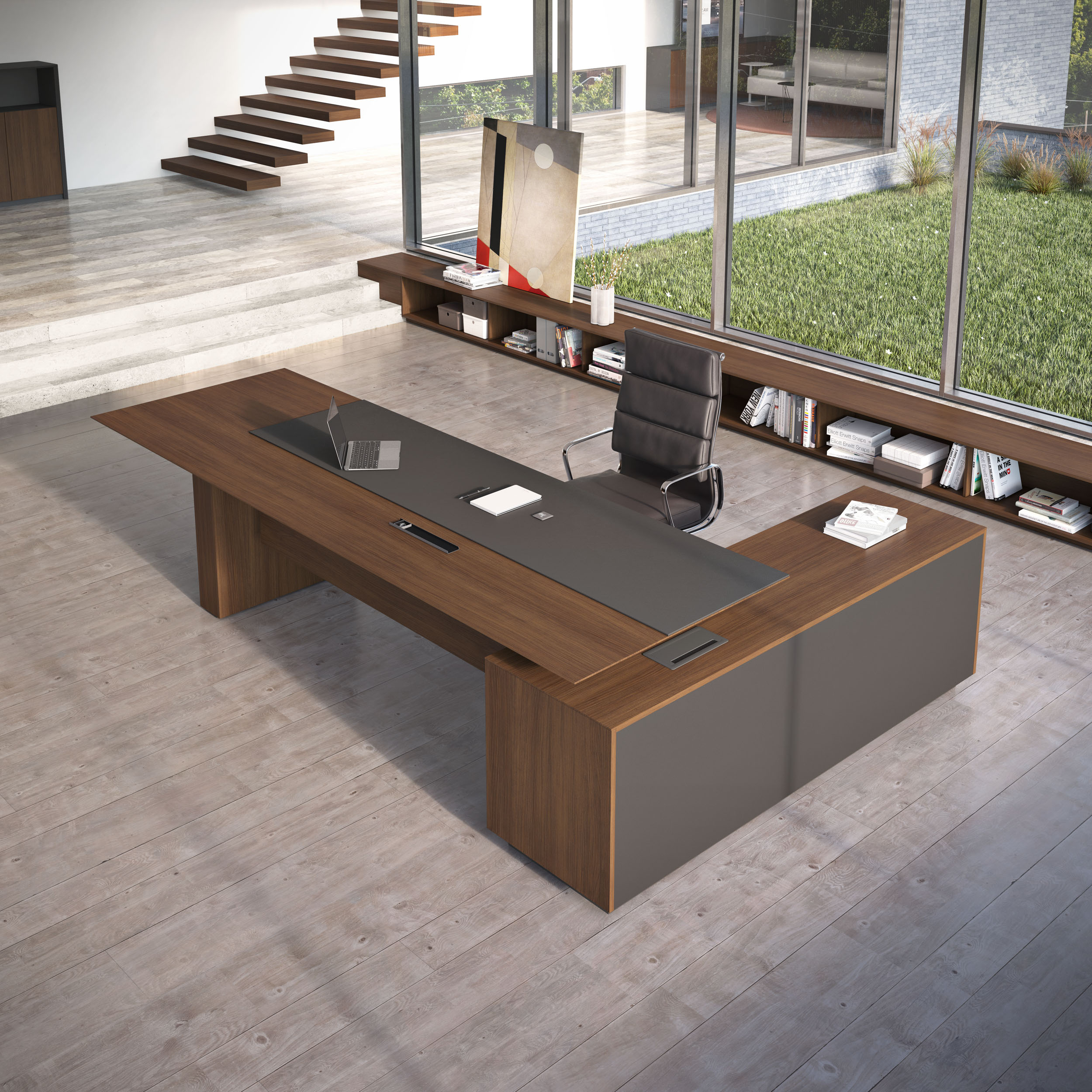 1、台面厚度50mm,木皮油漆;2、脚箱、副柜为木皮油漆,副柜柜面配一个集成线盒;3、门板和抽面扪皮,柜内三胺板。