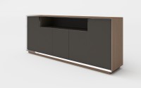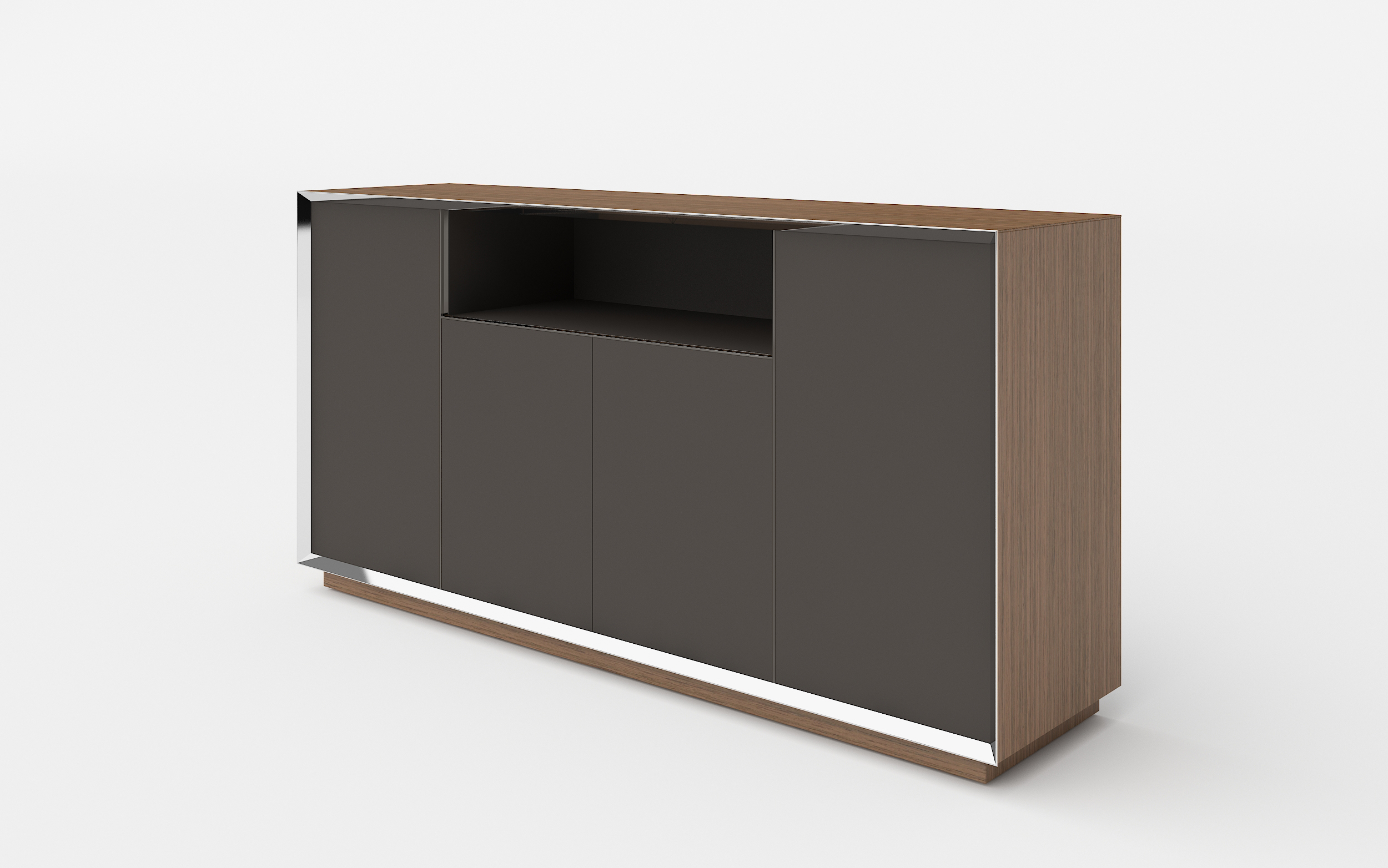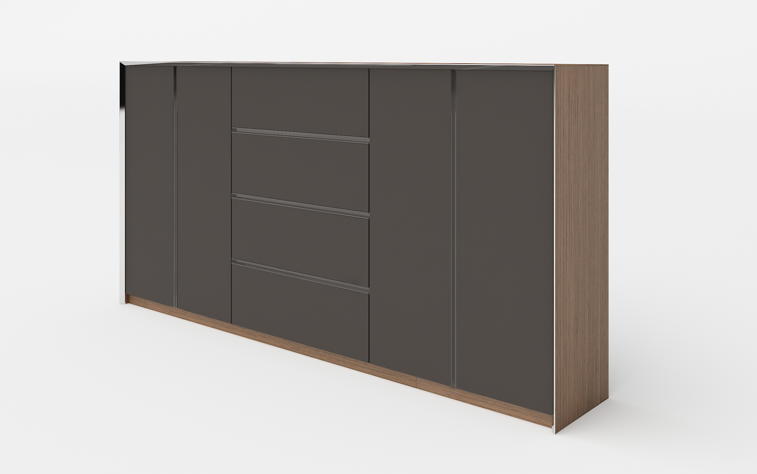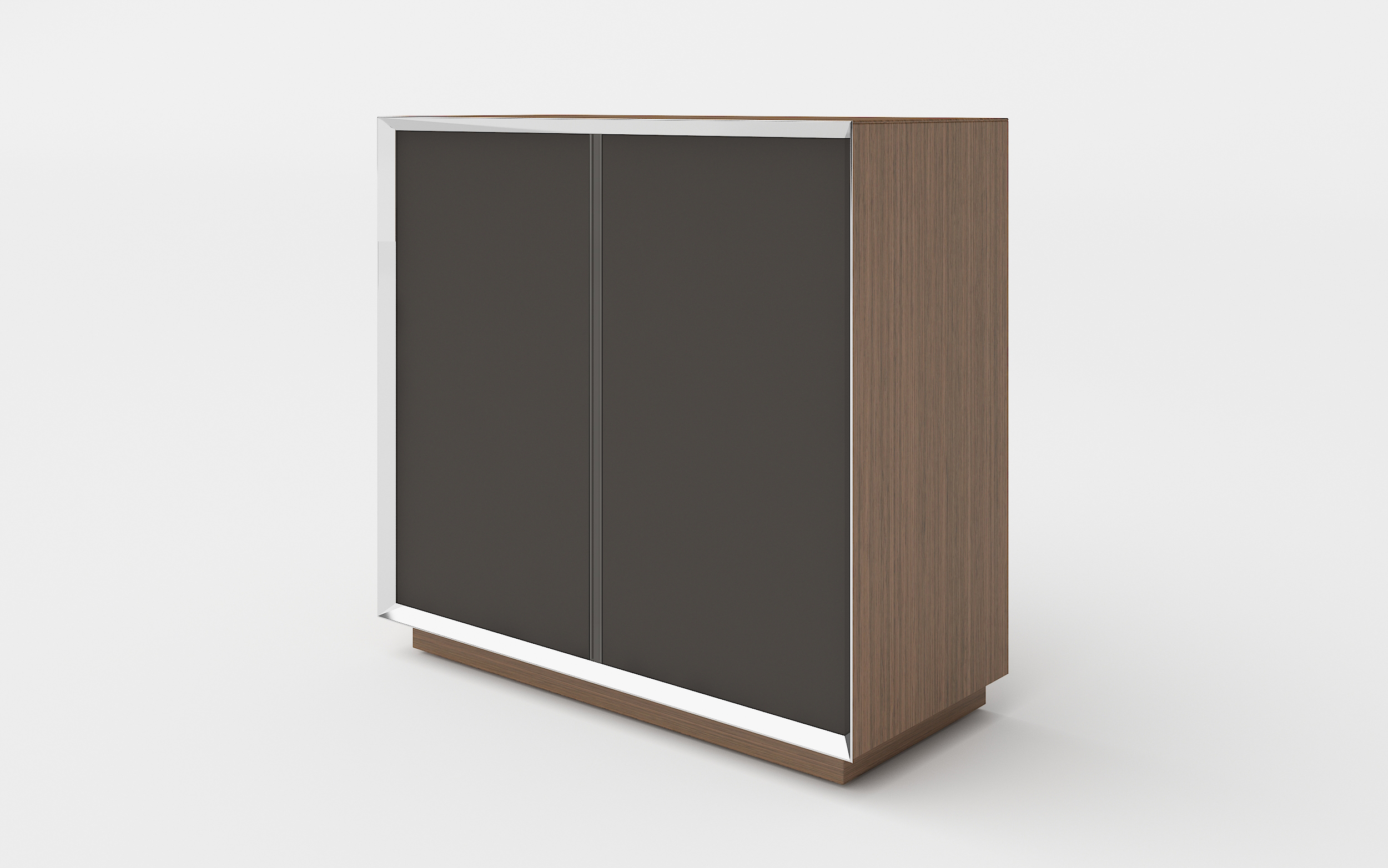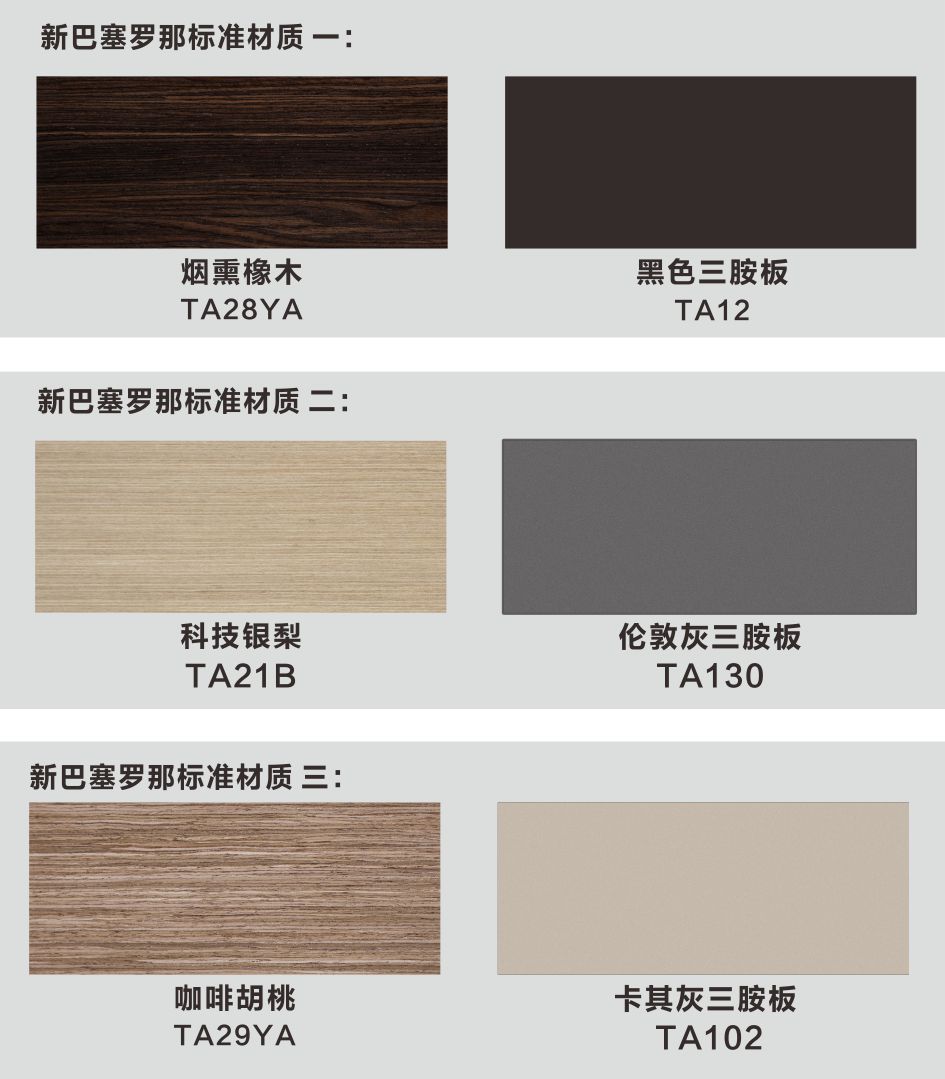 1、侧板、顶板为木皮油漆;2、门板隐藏铝拉手,柜体前边为铝装饰边;2、其余三胺板。