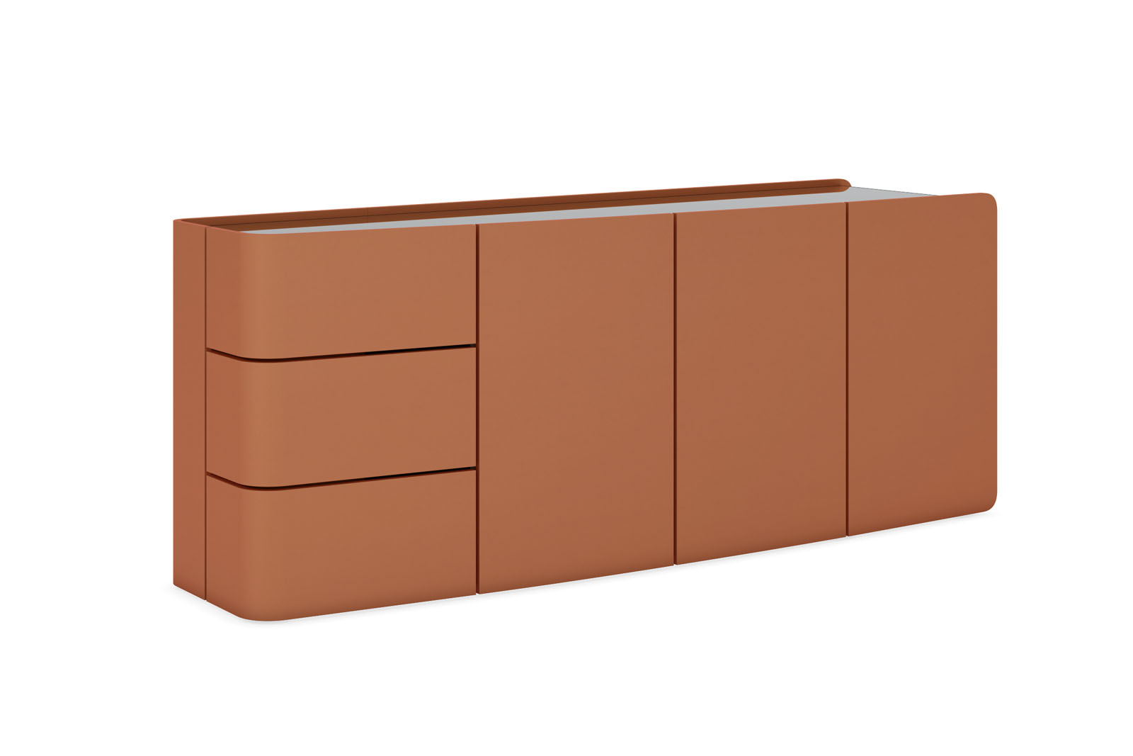 门板、背板为木皮 / 扪皮,柜内和侧板为实色漆。