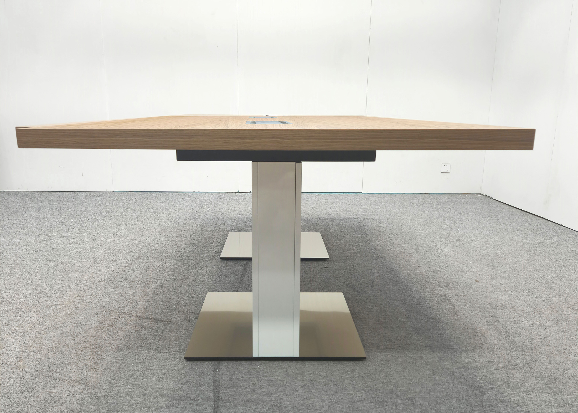 1、台面38mm厚木皮油漆,配金属翻盖集成插座;