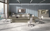 1、台面60mm厚,台面两边木皮油漆,中间扪皮,带不锈钢装饰条,配1.5米的电力路轨;