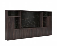 2、两边空格内为超白亚克力层板和中立板,见光背板贴岩板 / 实色漆。
